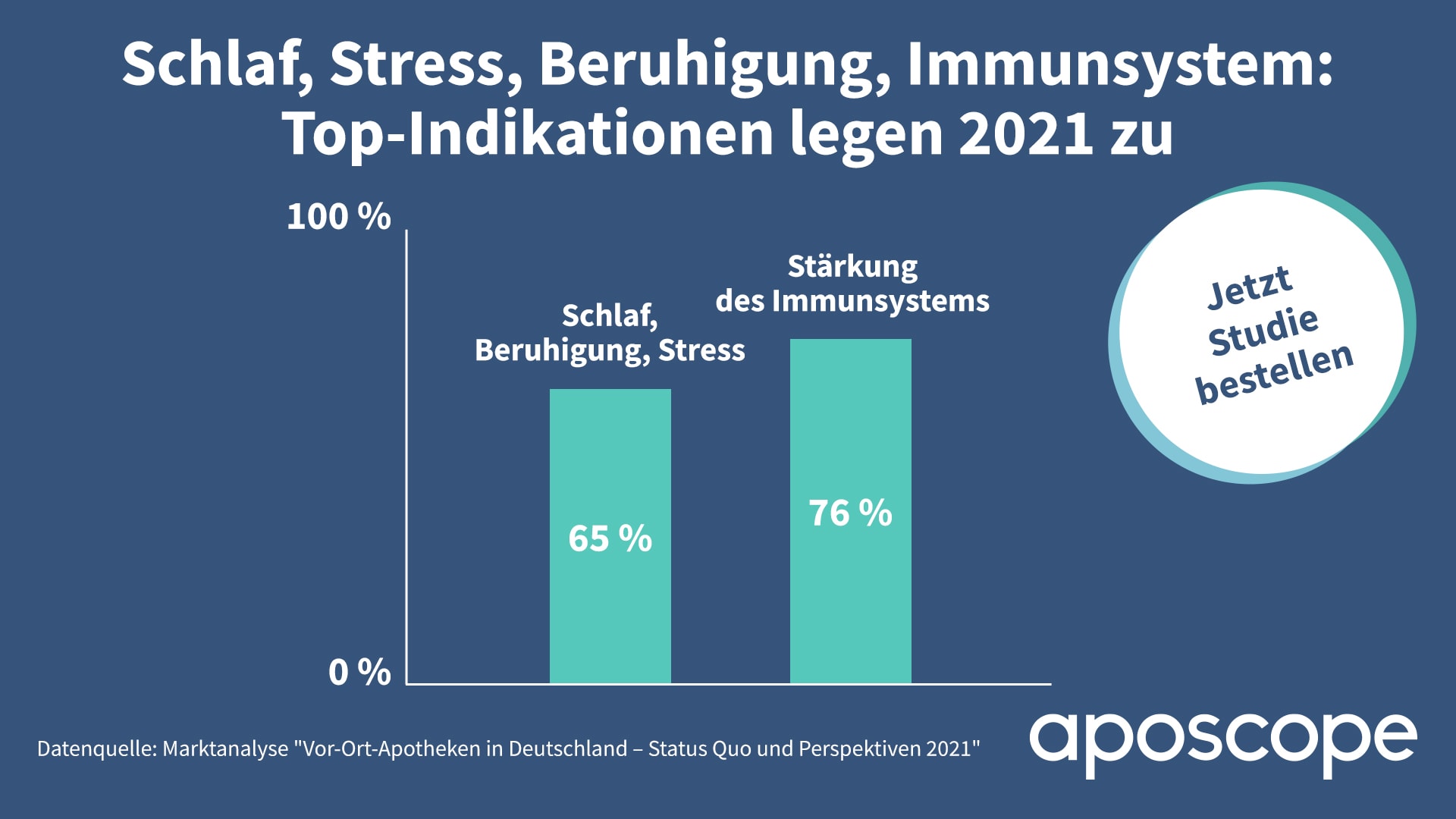 Geschlossene Geschäfte, Kitas und Schulen: Der anhaltende Lockdown stellt die Bevölkerung vor besondere Herausforderungen und schürt Zukunftsängste. Psychische Belastungen wie Stress, depressive Verstimmungen und Co. nehmen zu. Laut der neuen aposcope-Studie „Vor-Ort-Apotheken in Deutschland – Status Quo und Perspektiven 2021“ geht ein Großteil der mehr als 500 befragten Apothekerinnen, Apotheker und PTA davon aus, dass die Nachfrage nach Arzneimitteln und anderen Produkten im Bereich Schlaf, Stress und Beruhigung steigen wird. So erwarten die Apothekenteams, dass die Bedeutung der Indikation Schlaf, Beruhigung und Stress in diesem Jahr verglichen mit 2020 zunehmen (46 Prozent) beziehungsweise deutlich zunehmen wird (19 Prozent). Während unter den Inhaberinnen und Inhabern rund jeder zweite (53 Prozent) diese Ansicht vertritt, sind es unter den PTA sogar fast drei Viertel (72 Prozent).